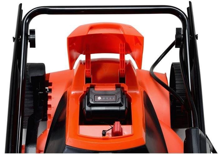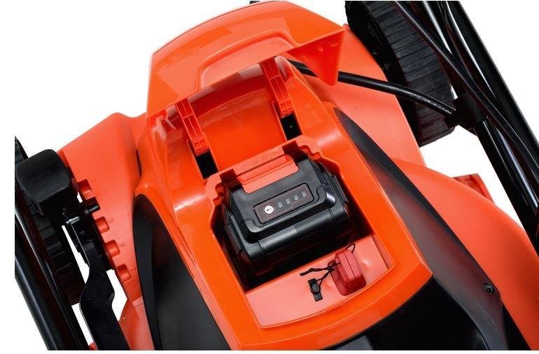 - Die Technologie erlaubt es den Rasenmäher zu Kippen und vertikal aufzubewahren