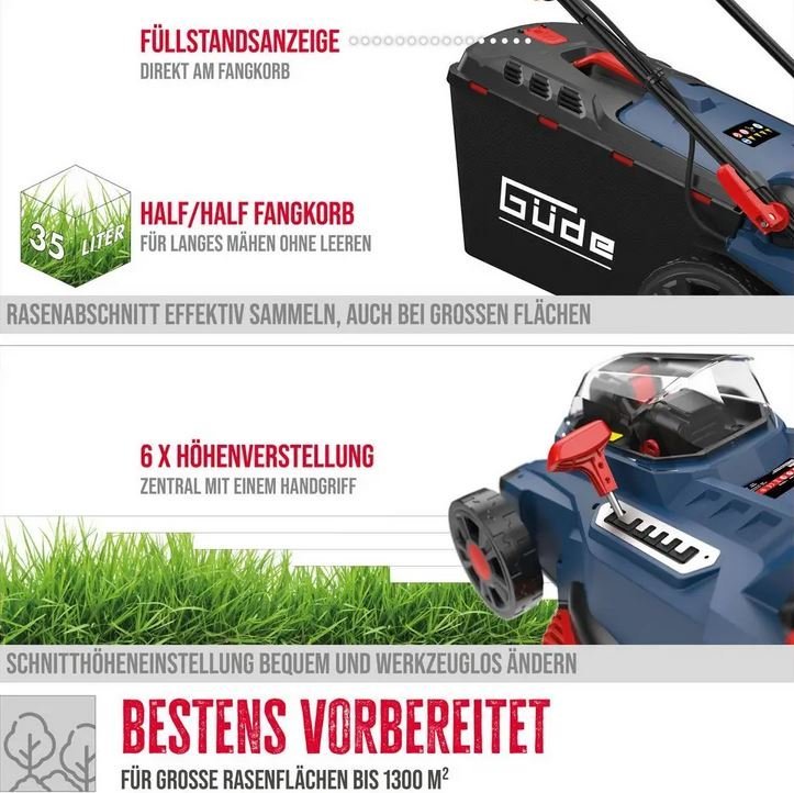 - zum Mulchen kein Messerwechsel erforderlich, Mulchstopfen im Lieferumfang enthalten