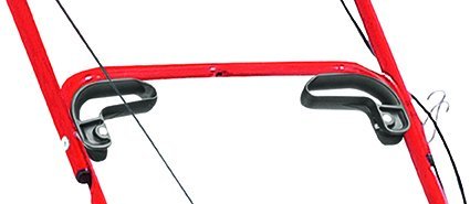 - der zweifach klappbare Holm ermöglicht eine besonders platzsparende Lagerung des Rasenmähers