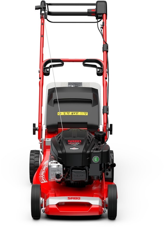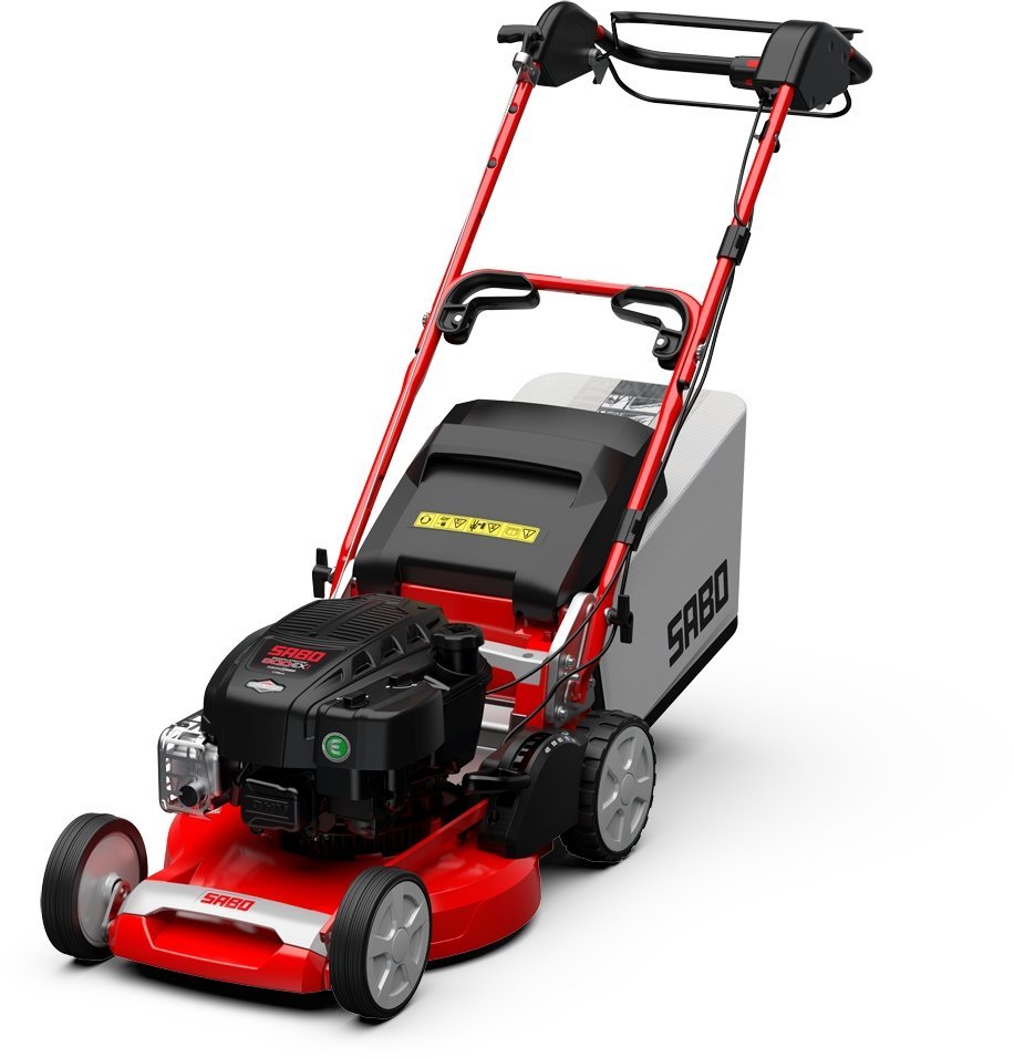 Komfortabler SABO Mäher mit zuschaltbarem und variablem Hinterradantrieb, der sich bequem vom Führungsholm aus bedienen lässt. Mit allen Ausstattungsmerkmalen eines echten SABO: Alu-Chassis, zentraler Schnitthöheneinstellung, verstellbarem Führungsholm und kräftigem Motor. Ein neues Konuskupplungsgetriebe ermöglicht ein dosierbares Einkuppeln des Antriebs und somit ein stufenloses, sanftes Anfahren durch das langsame Anziehen des Fahrantriebbügels.