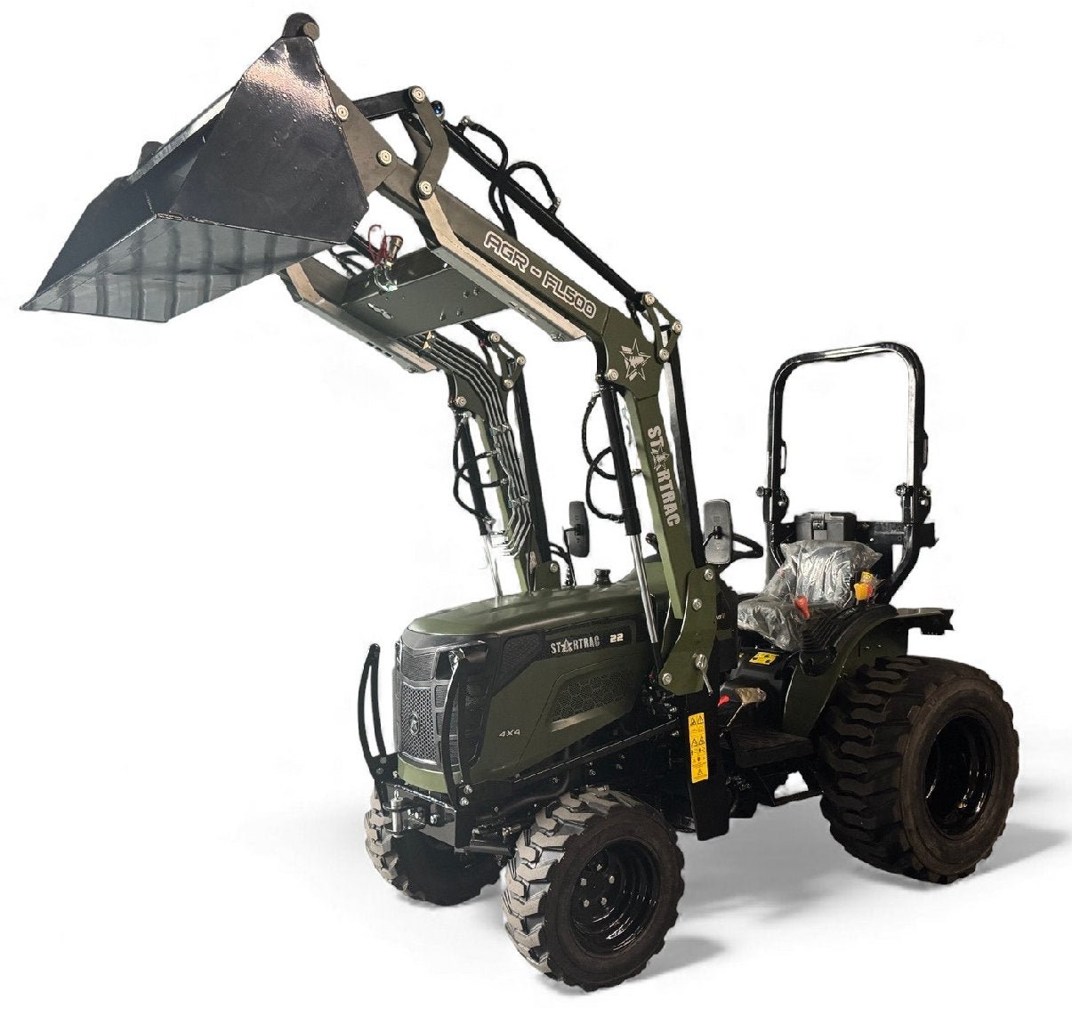 Startrac 22 Kleintraktor in Nato-Grün – mit Industriebereifung + Frontlader inklusive Schaufel