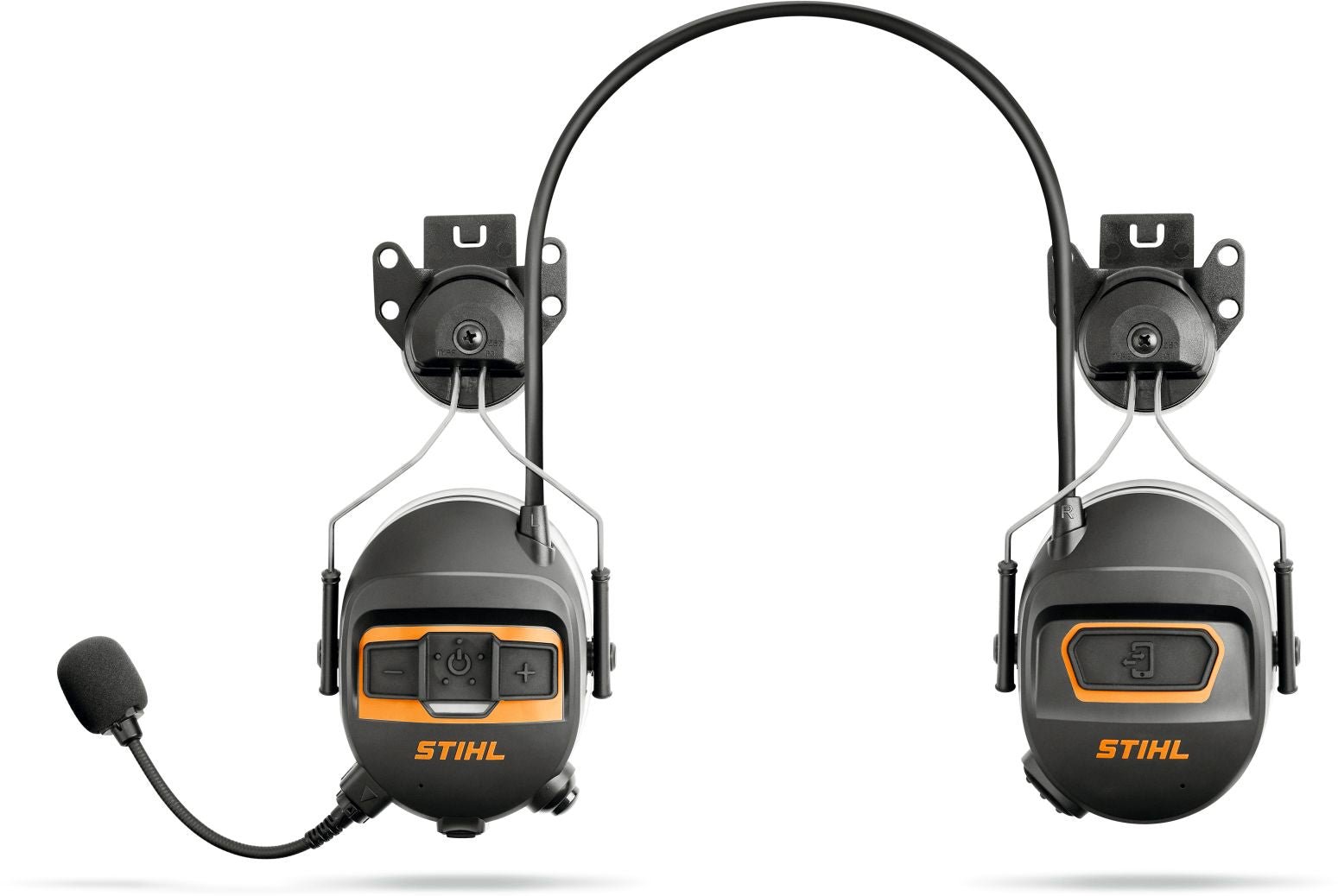 Dank der ergonomischen Taster, die sich haptisch voneinander unterscheiden, lässt sich der STIHL Gehörschutz ADVANCE ProCOM ganz einfach bedienen. Auch die Montage und Kopplung funktionieren unkompliziert. Über die Bluetooth®-Verbindung zu Ihrem Smartphone nutzen Sie viele Funktionen wie beispielsweise Telefonanrufe führen, Musik hören oder den Sprachassistenten, ohne das Gerät beim Arbeiten aus der Tasche holen zu müssen. Sie können den STIHL ADVANCE ProCOM auch mit handgetragenen Funkgeräten per Bluetooth® verbinden. Für Abwechslung sorgt bei Bedarf das integrierte FM-Radio.