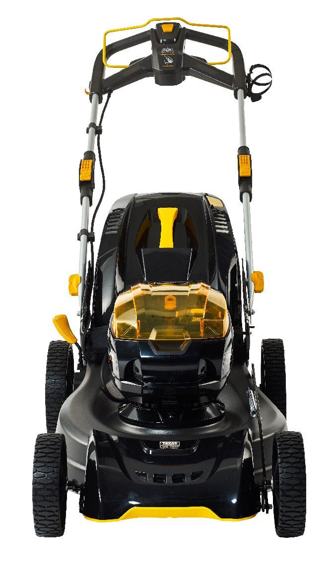 - Dank des klappbaren Führungsholm kann der Rasenmäher platzsparend eingelagert oder transportiert werden.