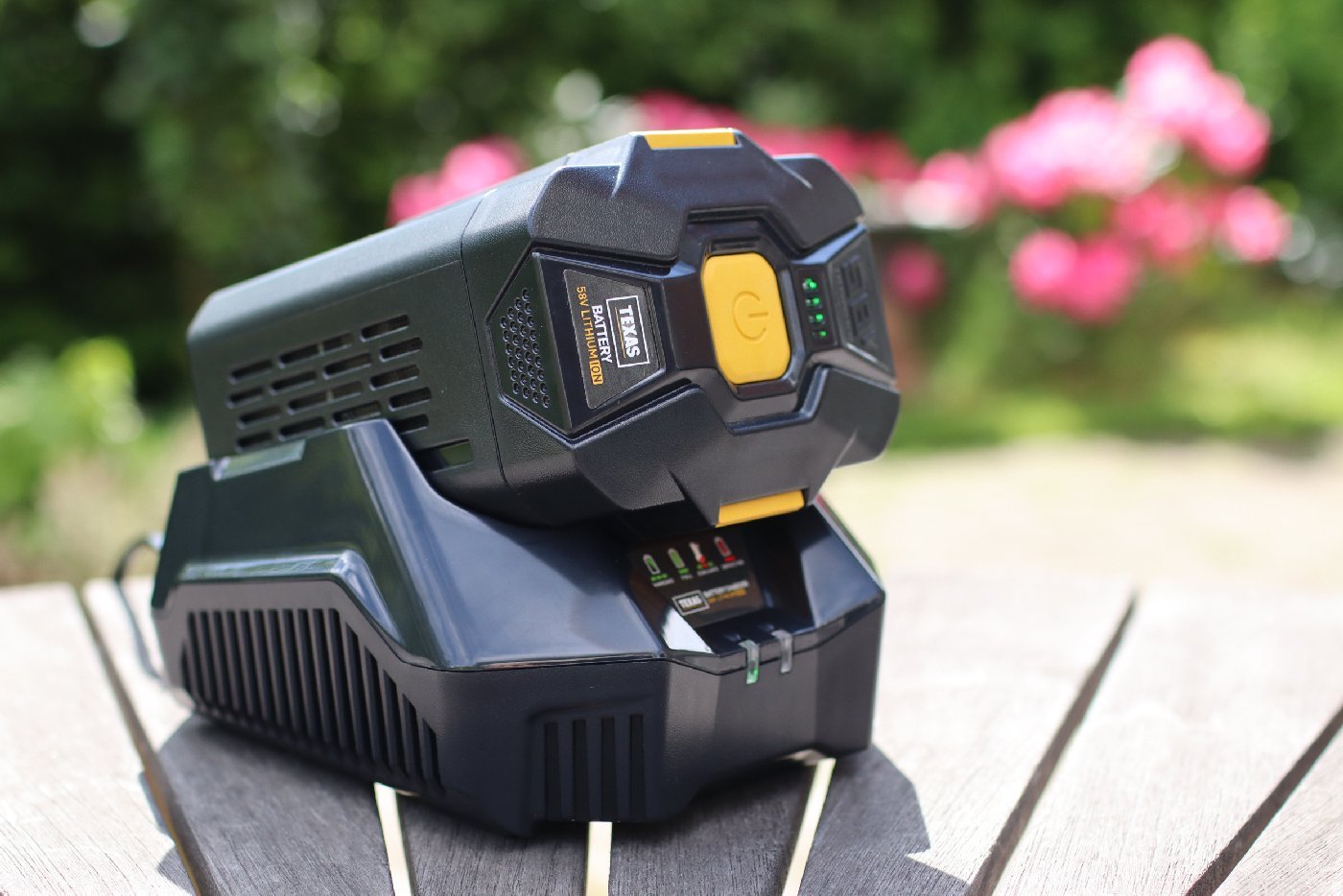 Akku und Ladegerät sind kompatibel mit andere Texas Geräte aus der 58V Akku Serie!